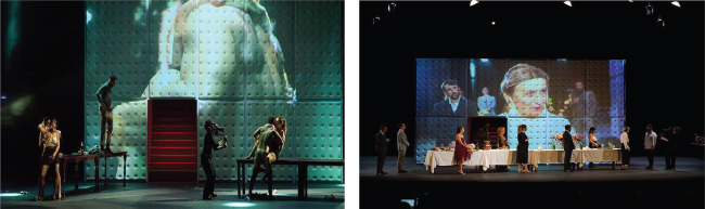 Asimismo, lo cinematográfico se consolida como elemento estructural en las tres obras, interviniendo en la creación formal, conceptual y sensorial de la dramaturgia. Los días afuera enfatiza la opacidad del dispositivo audiovisual, permitiendo que el público tome conciencia del proceso de producción y reflexione críticamente sobre la representación. Cosmogony, en cambio, apuesta por la transparencia y la inmersión, integrando el cine y las artes digitales en una experiencia sensorial completa. Festen alterna entre ambos modelos perceptivos, generando una tensión entre la inmersión en la narrativa y la conciencia reflexiva de estar asistiendo a un registro cinematográfico en tiempo real. Esta variedad demuestra la riqueza de las estrategias intermediales y su potencial para experimentar con distintas formas de percepción y recepción.