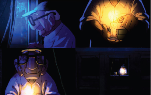 Mientras esto sucedía, la vida cotidiana de una persona mayor no se vio tan afectada como la de la mayoría de las personas. Cuando el confinamiento comenzó, esta persona llevaba varios años viviendo sola en su casa, con una discapacidad visual importante que le impedía salir sin un apoyo personal, hecho que limitaba bastante sus interacciones sociales. Esta persona era mi abuelo paterno. Su realidad me inspiró para emprender el proyecto La vela (De Miguel, 2023), un cortometraje de animación en 2D. Esta experiencia personal, a través de mis encuentros con él durante el confinamiento y sus testimonios, se convierte en el punto de partida de una reflexión más amplia sobre la exclusión digital y el papel del arte como medio de conexión social.