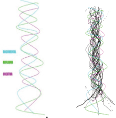 El modelo helicoidal parte de la idea de que la investigación artística no progresa en fases cerradas secuenciales, sino en un movimiento espiralado y constante de sus tres ejes: